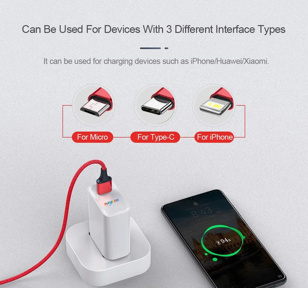 Excellent![3In1 Fast Charging Cable Cord For iPhone Xiaomi photo review]()