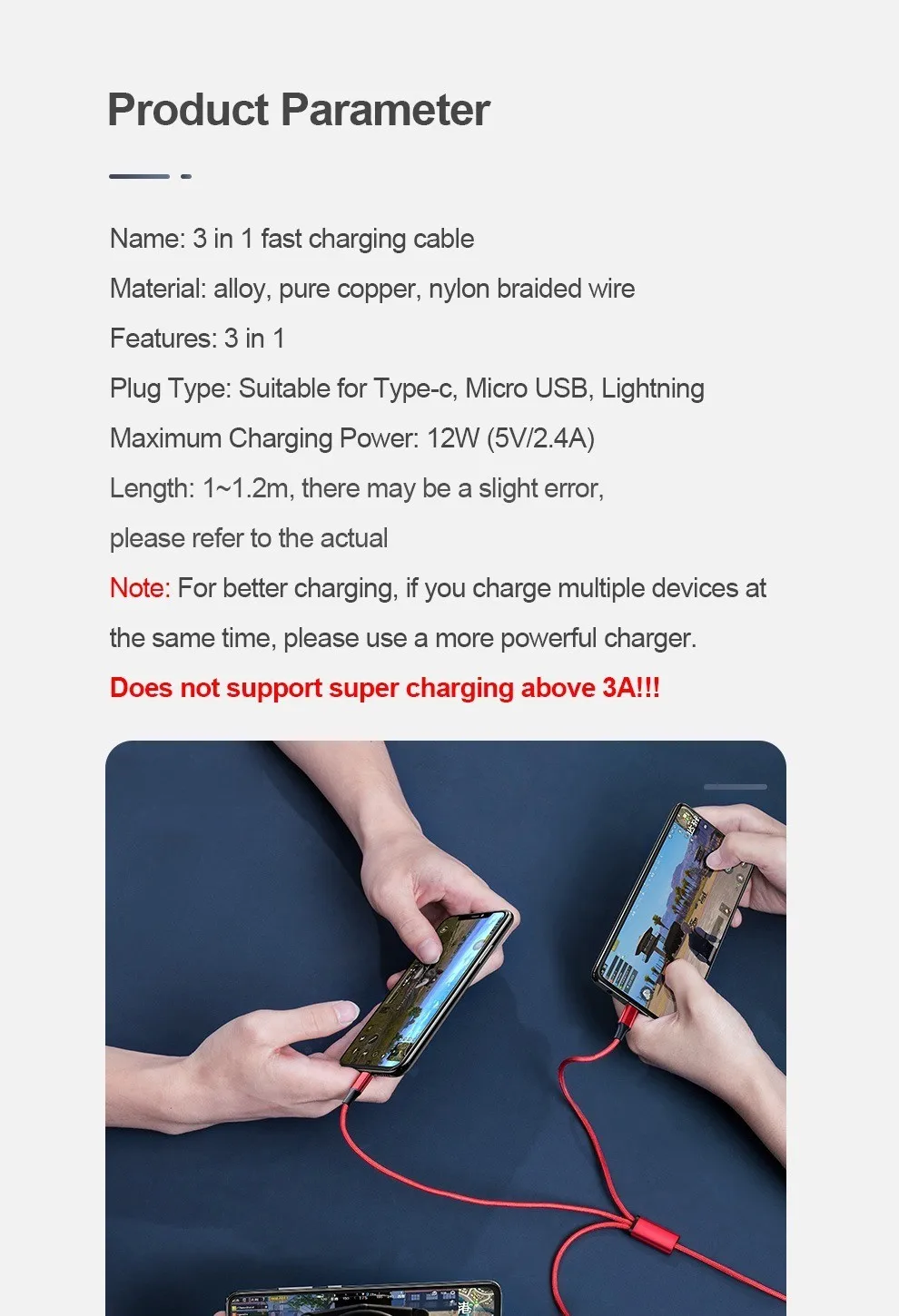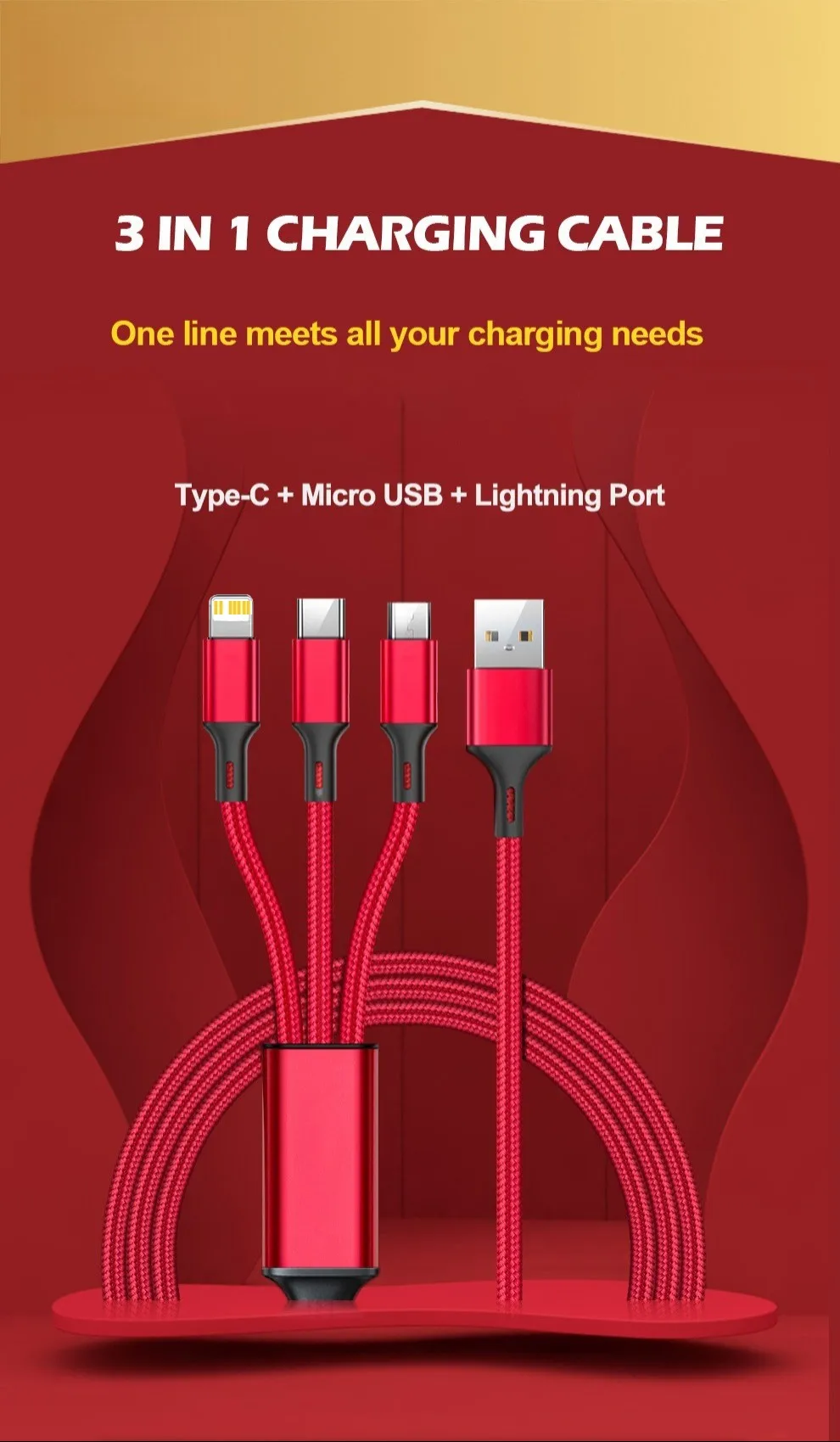 ![3In1 Fast Charging Cable Cord For iPhone Xiaomi photo review]()
