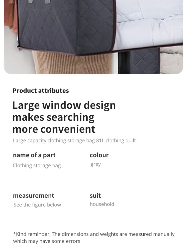 • Large Capacity :The 3pcs or 6pcs storage bags have a large capacity to store blankets, comforters, bed sheets, pillows, and toys.