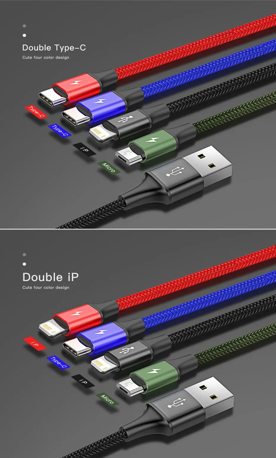• 4 in 1 Cable: This cable is compatible with Samsung S20, Xiaomi Mi 9, iPhone 12×11 pro Max, and Huawei devices, making it a versatile option for all your charging needs.