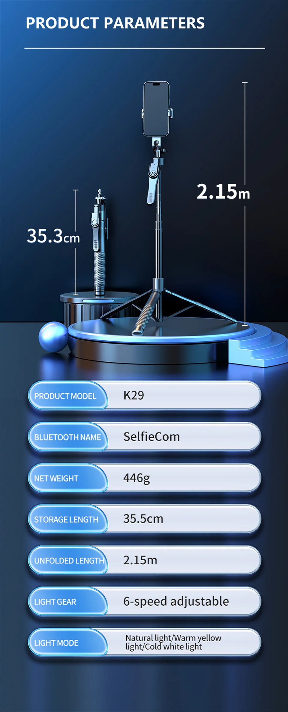 +2He will appear soon and he will be fully displayed in the image. I bought it as a gift and I am very happy because I know it will be very useful.![BSLIUFANG 2.15M 360 ° rotation selfie stick Wireless photo review]()