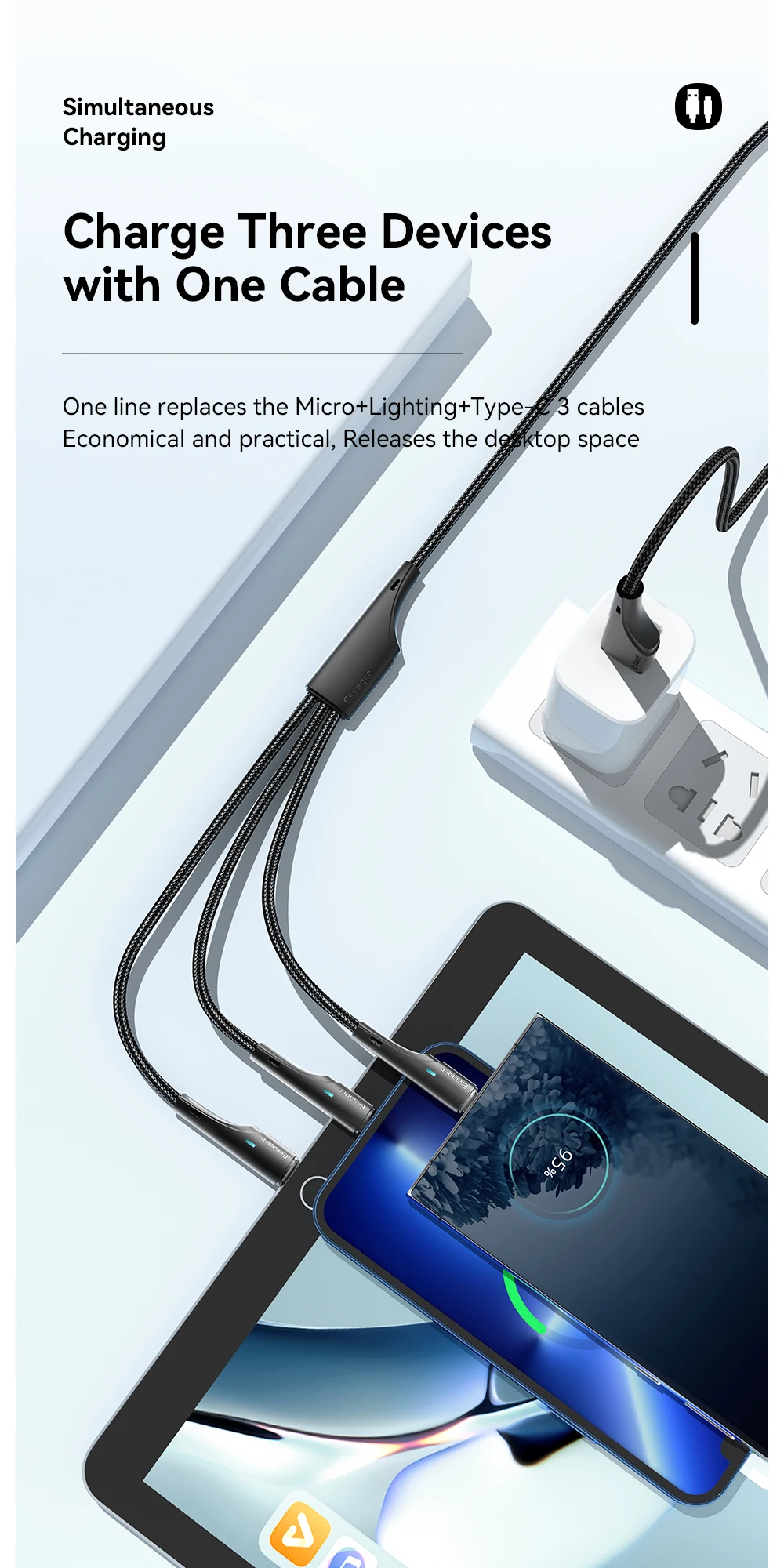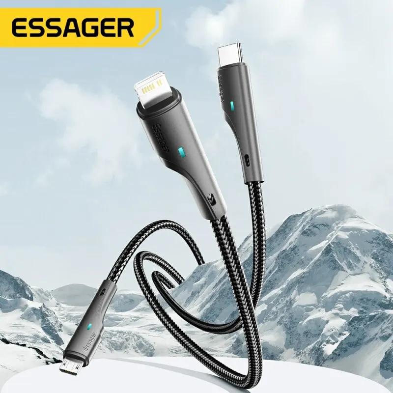 • 3-in-1 USB Cable :This cable can charge your device quickly with its 3-in-1 design, which includes micro USB, USB A, and Type-C connectors.