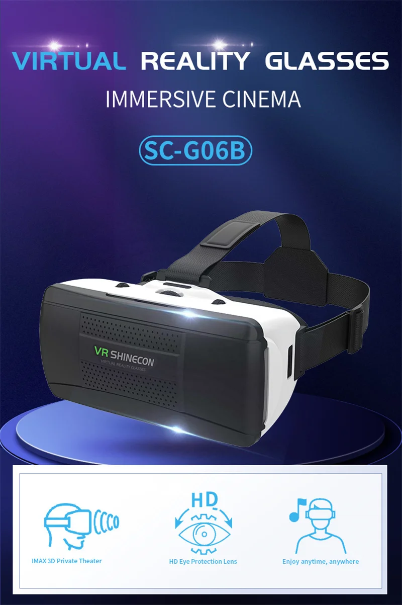 Original G06B Virtual Reality Glasses IMAX Giant Screen 3D Movie Google Cardboard Box VR Headset Helmet for Smartphone,Support Game Joystick Gaming Controller