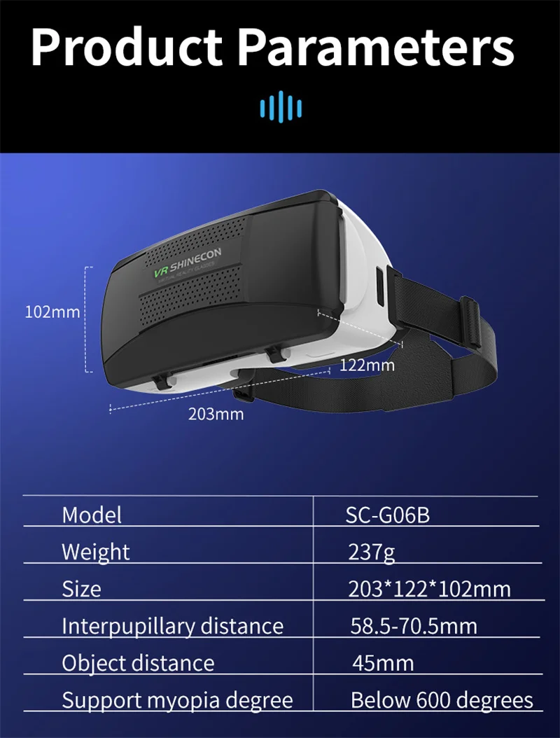 4. 42MM diameter non spherical optical resin lens: Supports myopia within 600 degrees, no need to wear glasses, and clarity can be adjusted through IPD/object distance.