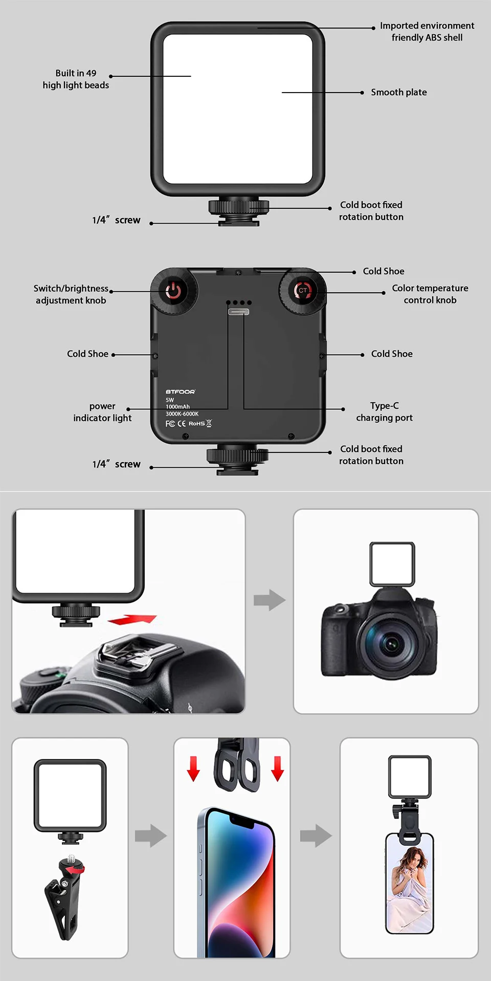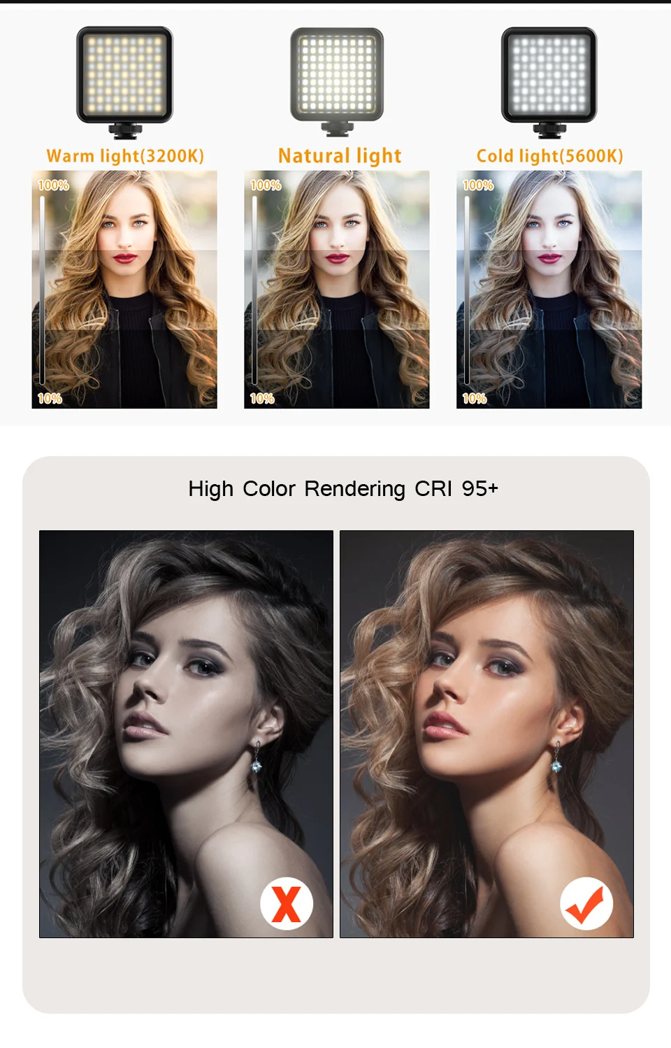 LED Video Light Portable Photography On-Camera 3000K-6000K Bi-Color