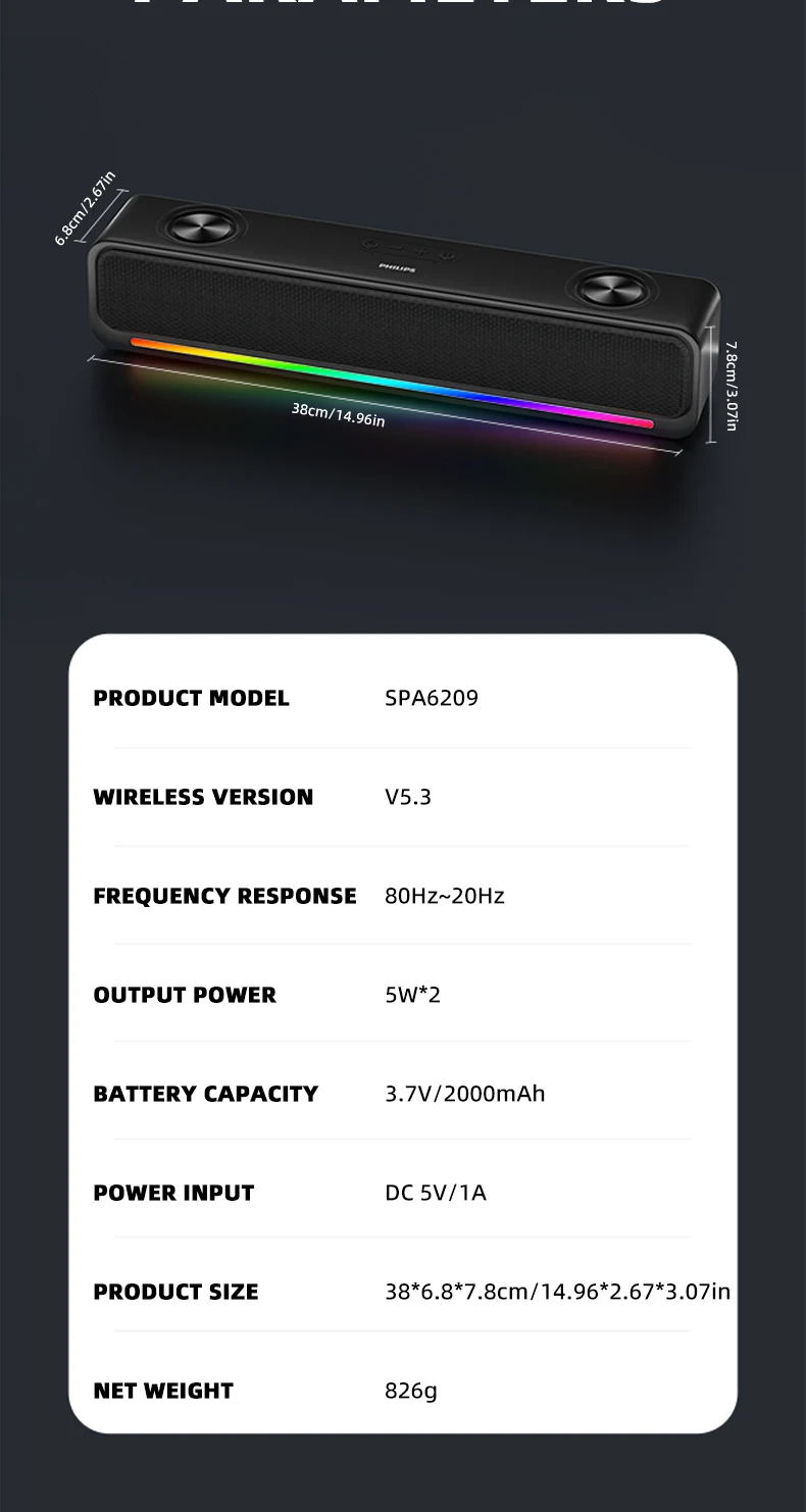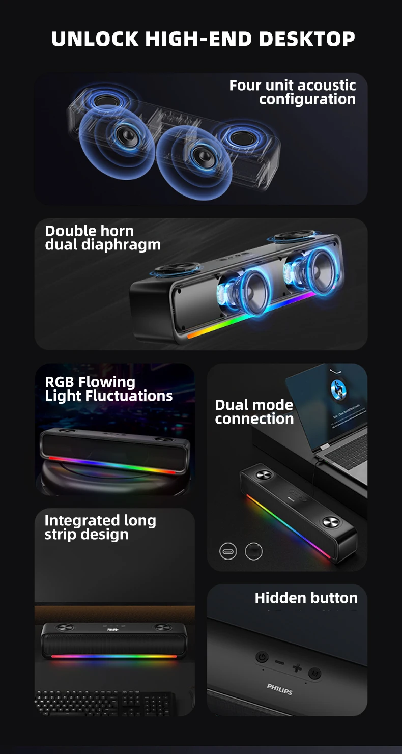 Philips SPA6209 Multimedia Desktop Speaker Wireless 5.3 Double