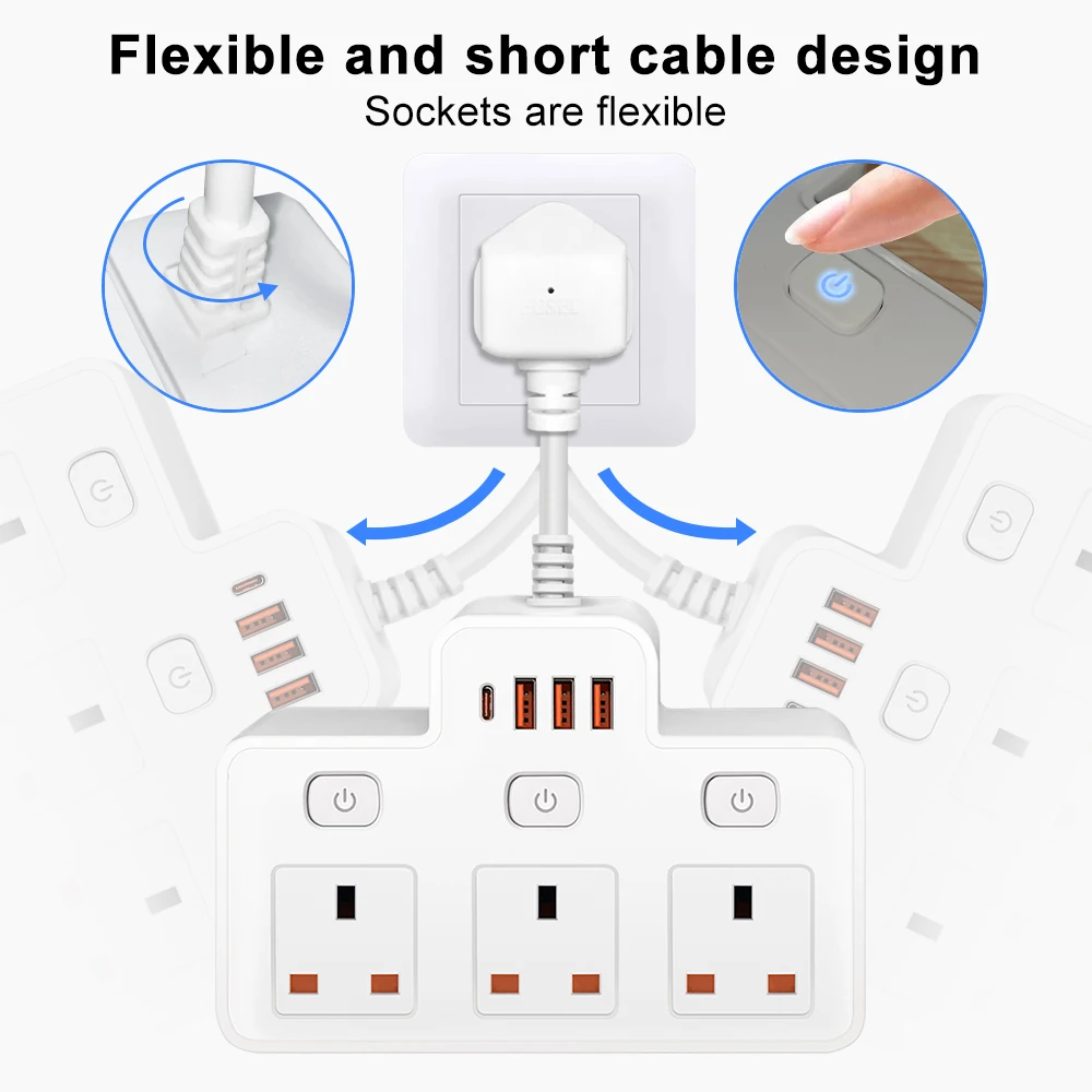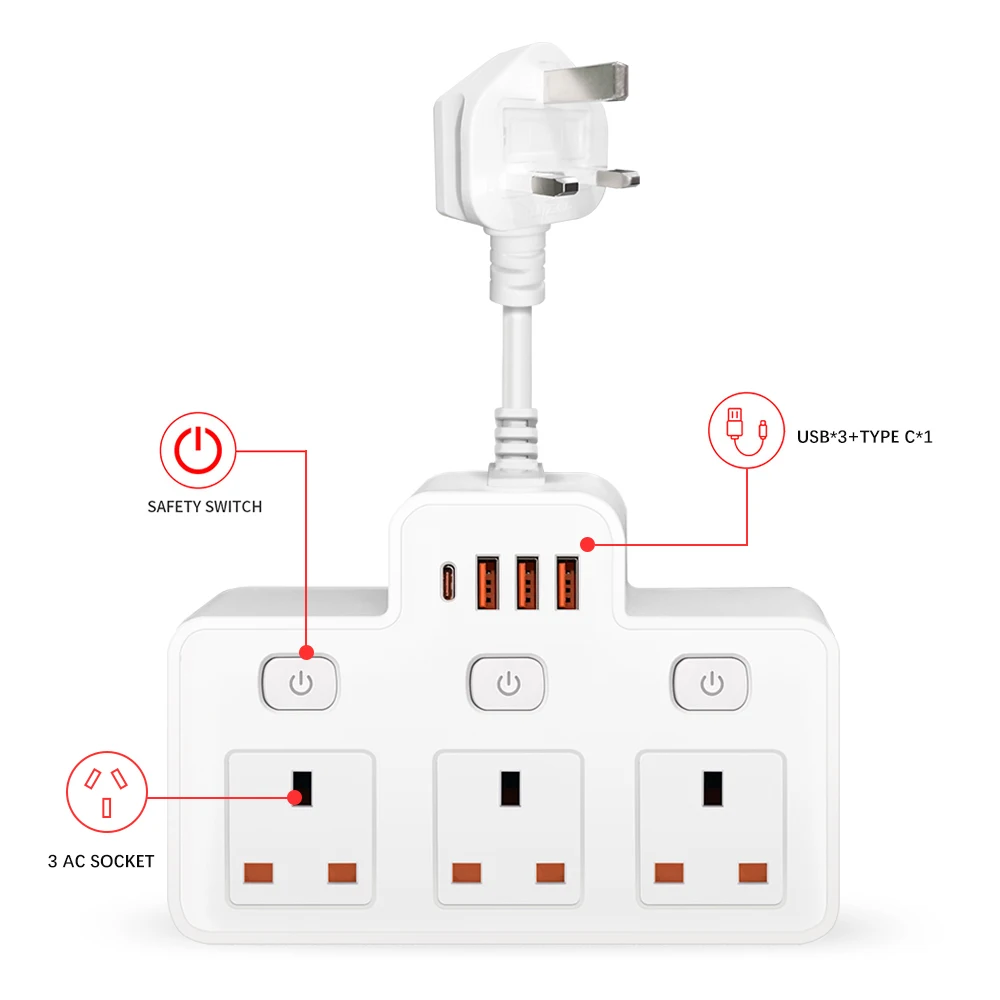UK AC Plug Power Strip Wall Mounted Independent