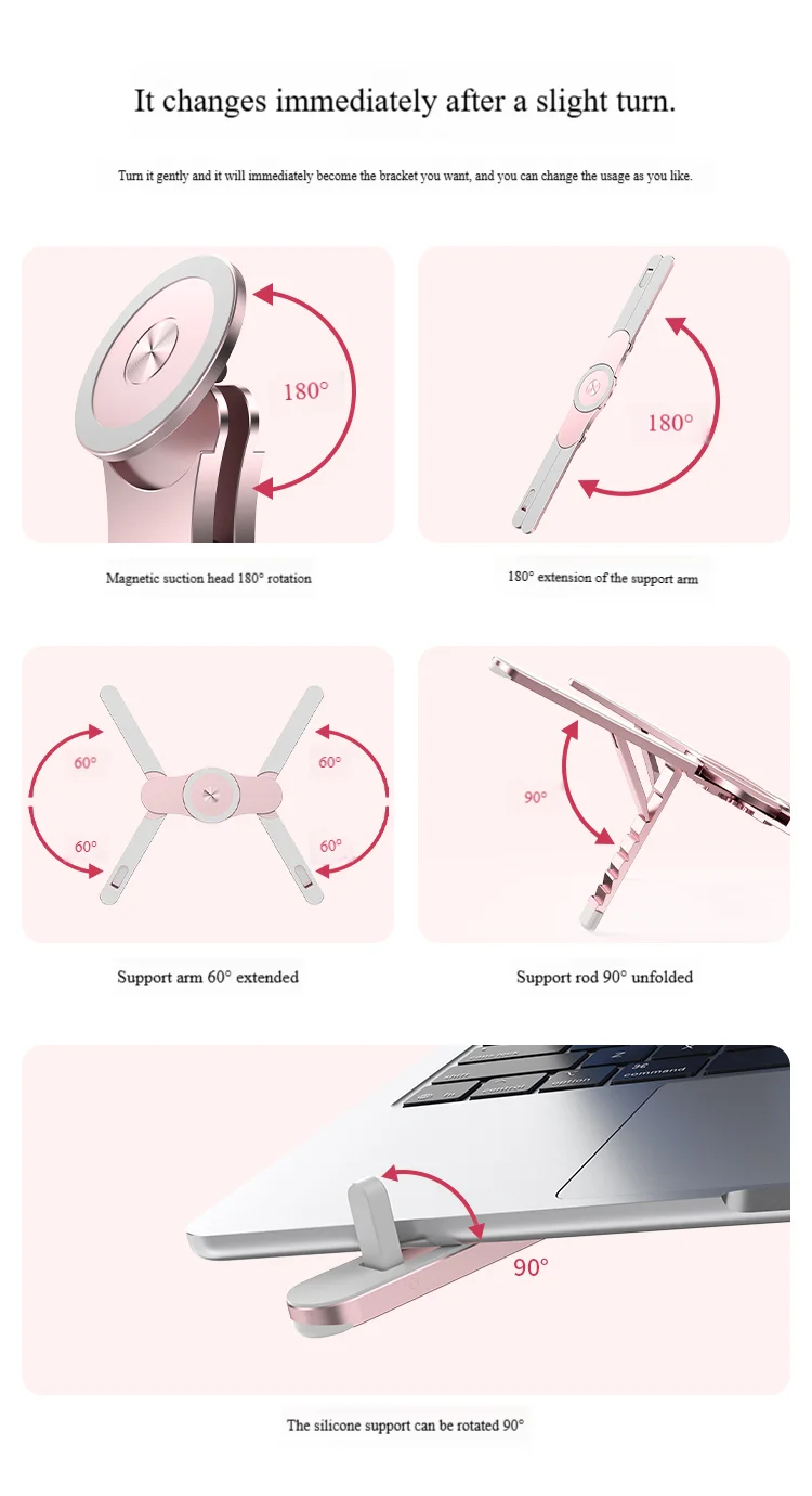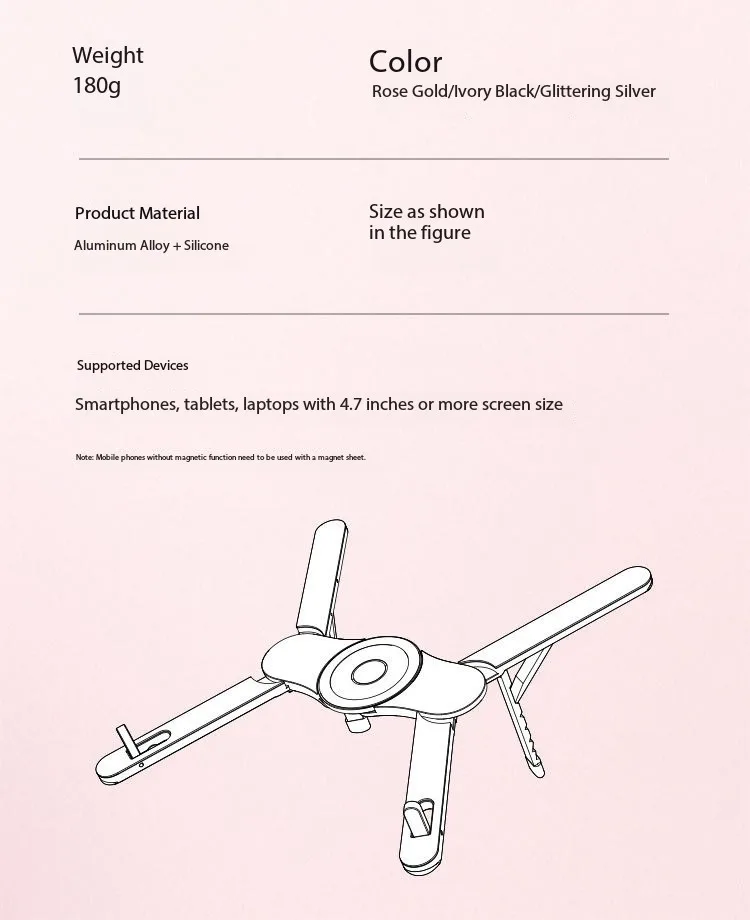 Portable Magnetic Stand Aluminum Adjustable Angle Phone Tablet
