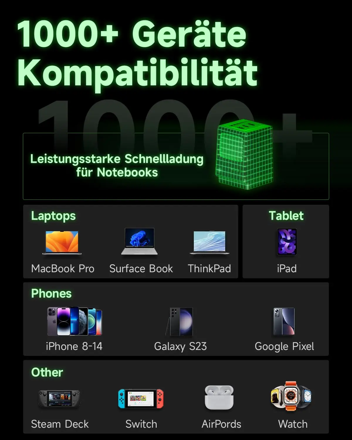 With fast charging technology, it is compatible with a variety of portable devices.