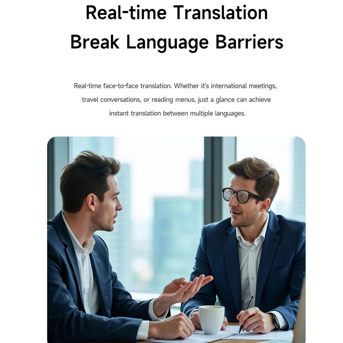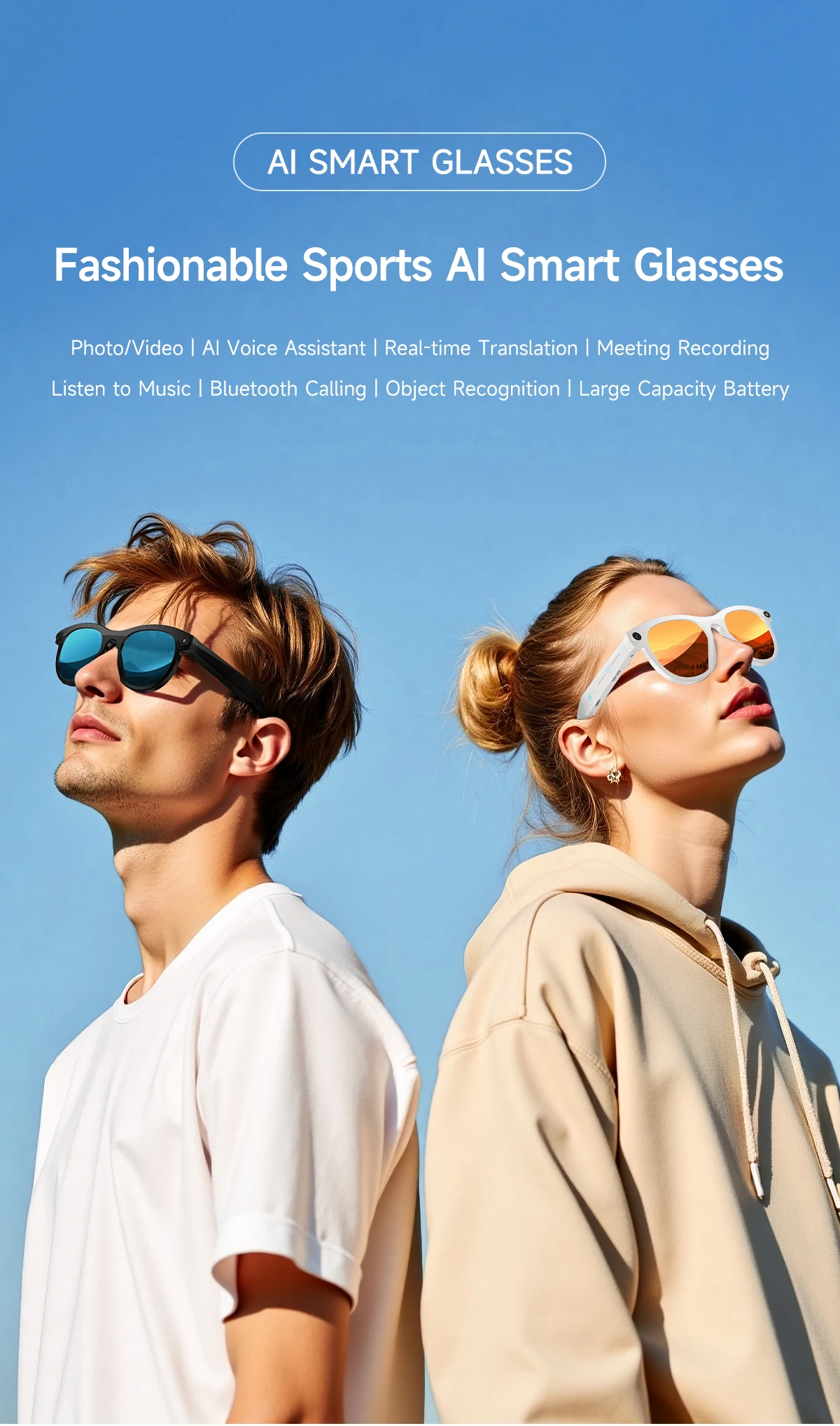 - Function: Music,Camera,VIDEO,Voice Assistant,calling,Anti-blue light,AI translator,Ai