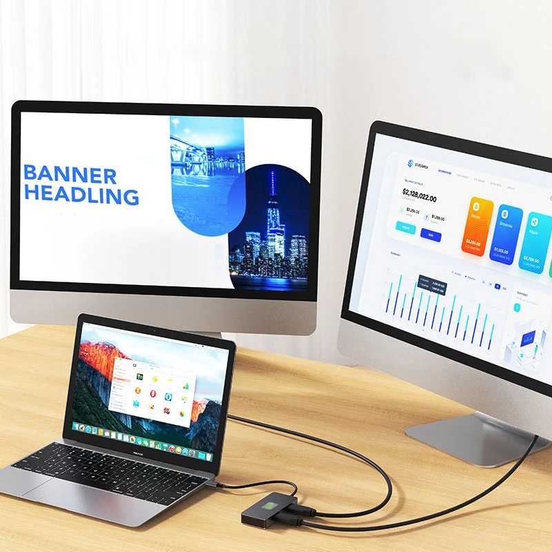 2. 4K HD Projection: The USB C hub supports 4K resolution for high-definition video output, allowing you to mirror your laptop screen onto larger displays such as monitors, TVs, or projectors. Enjoy clearer, more realistic HD images and video experiences.